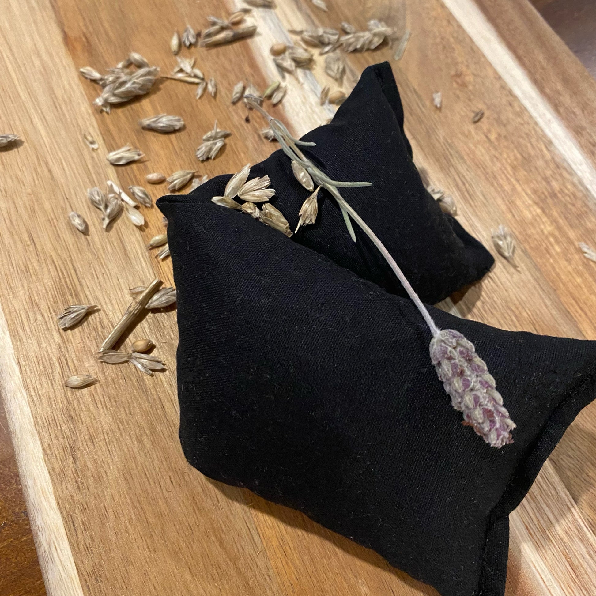Heat this lavender infused with eye pillow (made with wheat) and place over your eyes for support getting to sleep, or use chilled for some stress relief before or after a busy day.