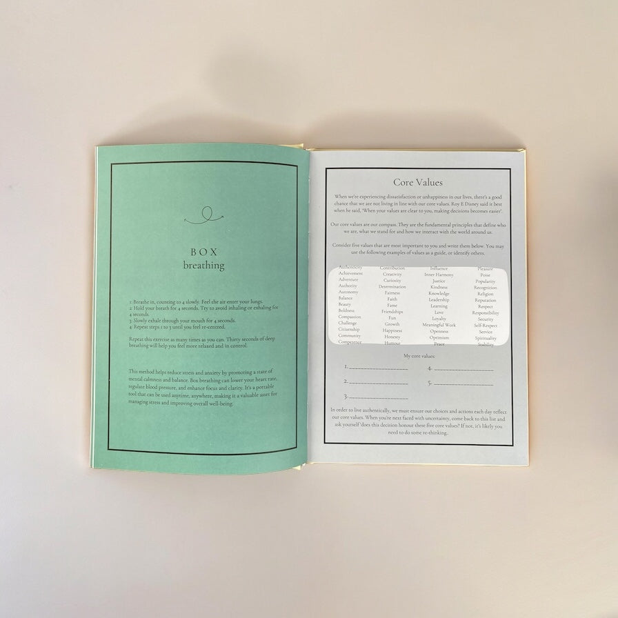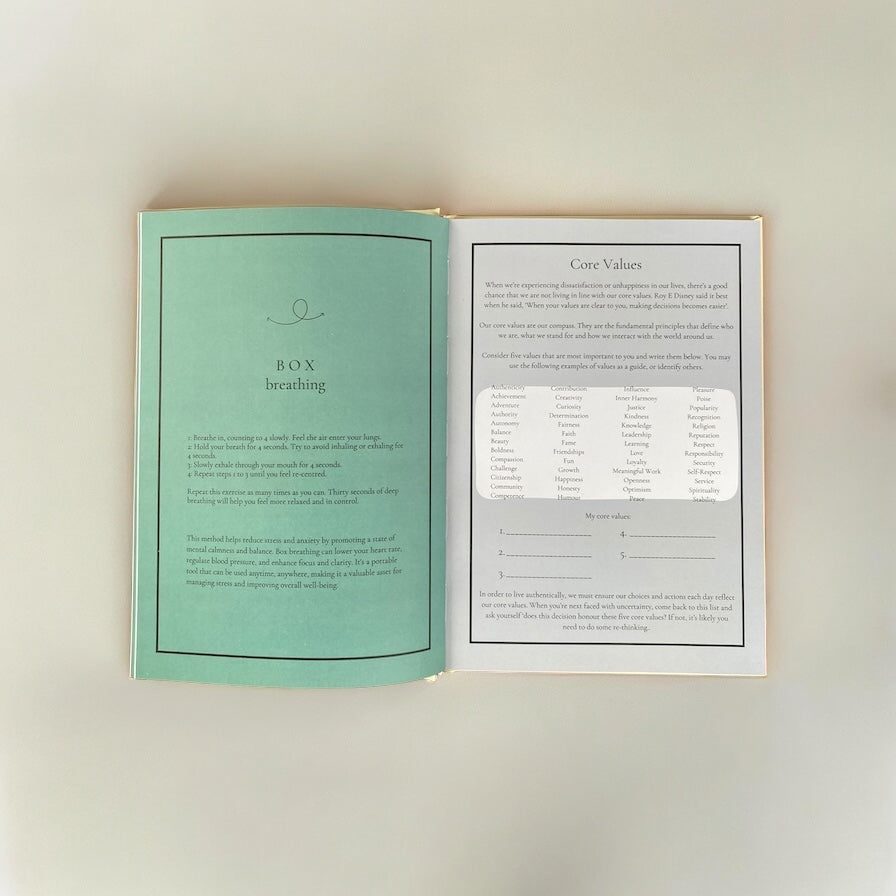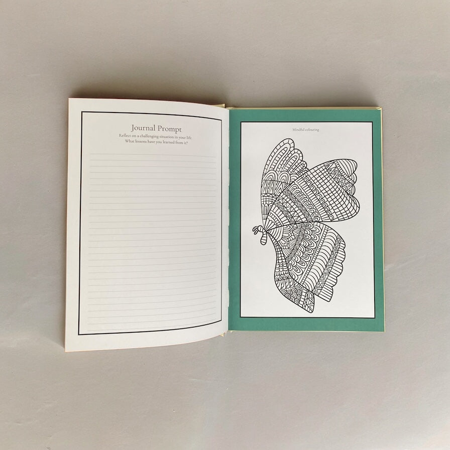 Consider this journal your interactive sanctuary, where you'll be gently prompted to engage in expressive writing, artistic endeavours, mindful colouring, thoughtful reflection, meditation, and the strategic setting and accomplishment of your goals. It's not just a journal; it's your dynamic guide to personal growth and fulfilment.